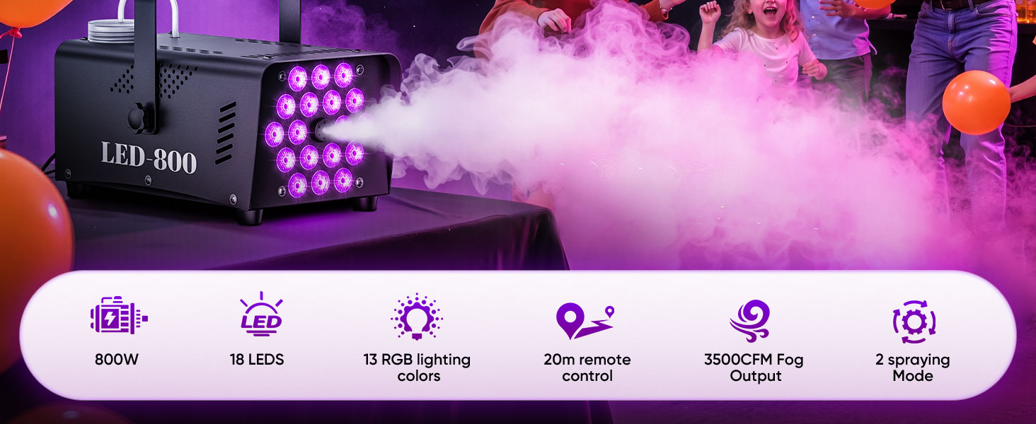 Fog Machine, 800W Smoke Machine With 13-Color LED Effects, 3500CFM Smoke Machine Fog Output, Wired And Wireless Remote Control. Ideal For Halloween, Parties, Wedding And DJ Stage